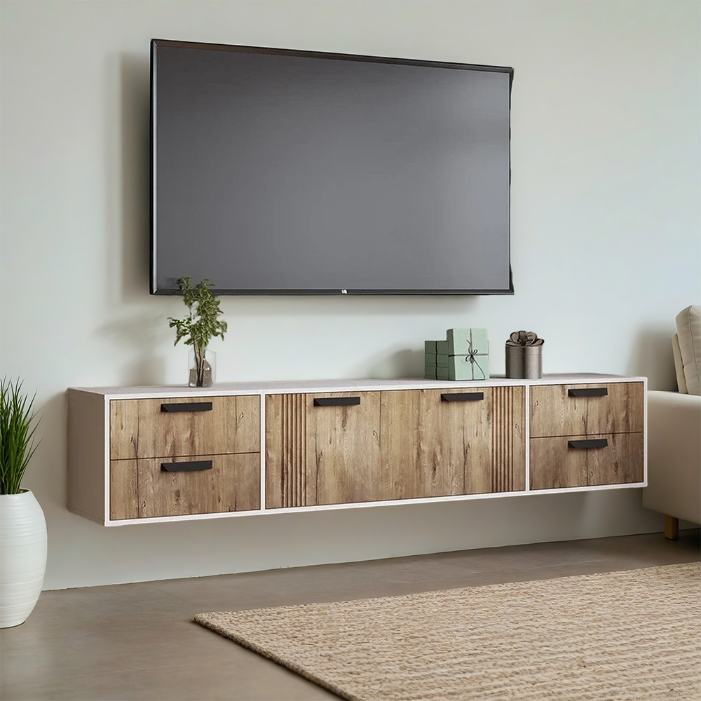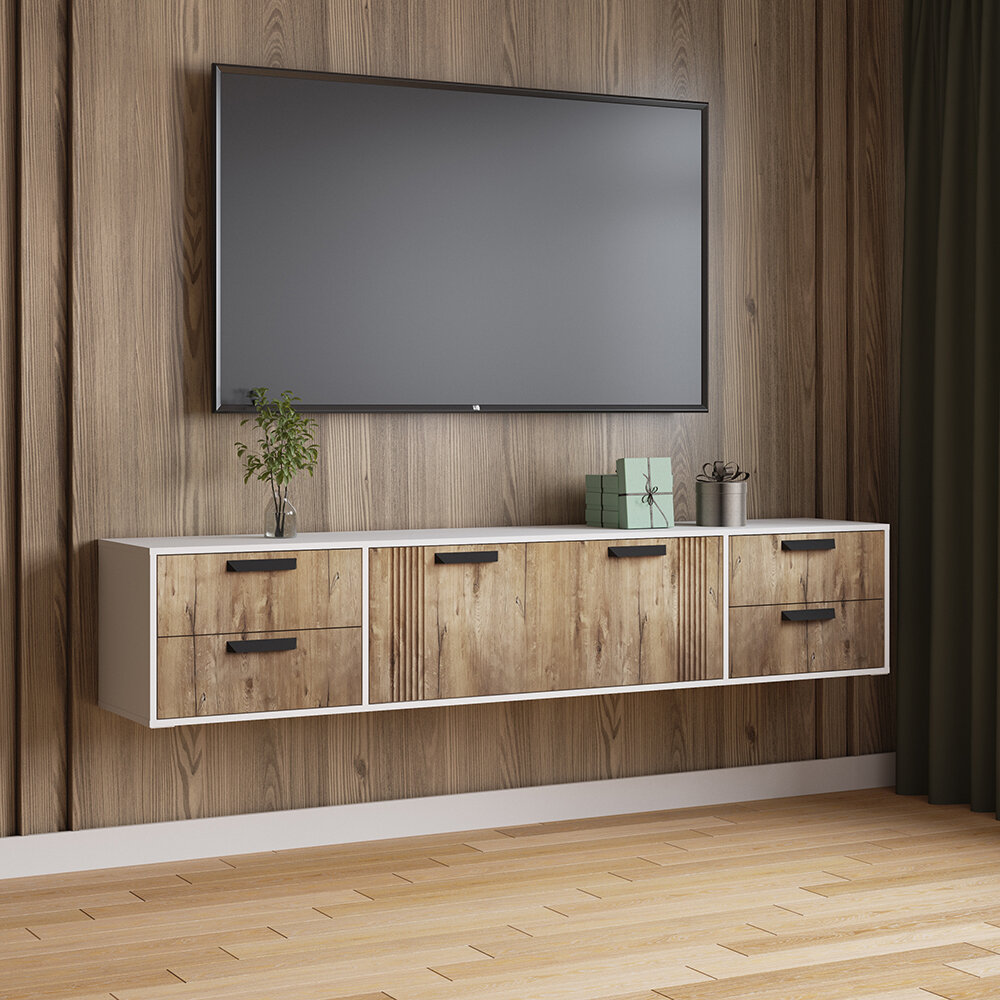 Тумба ТВ подвесная Парус-12, белый/дуб канадский
