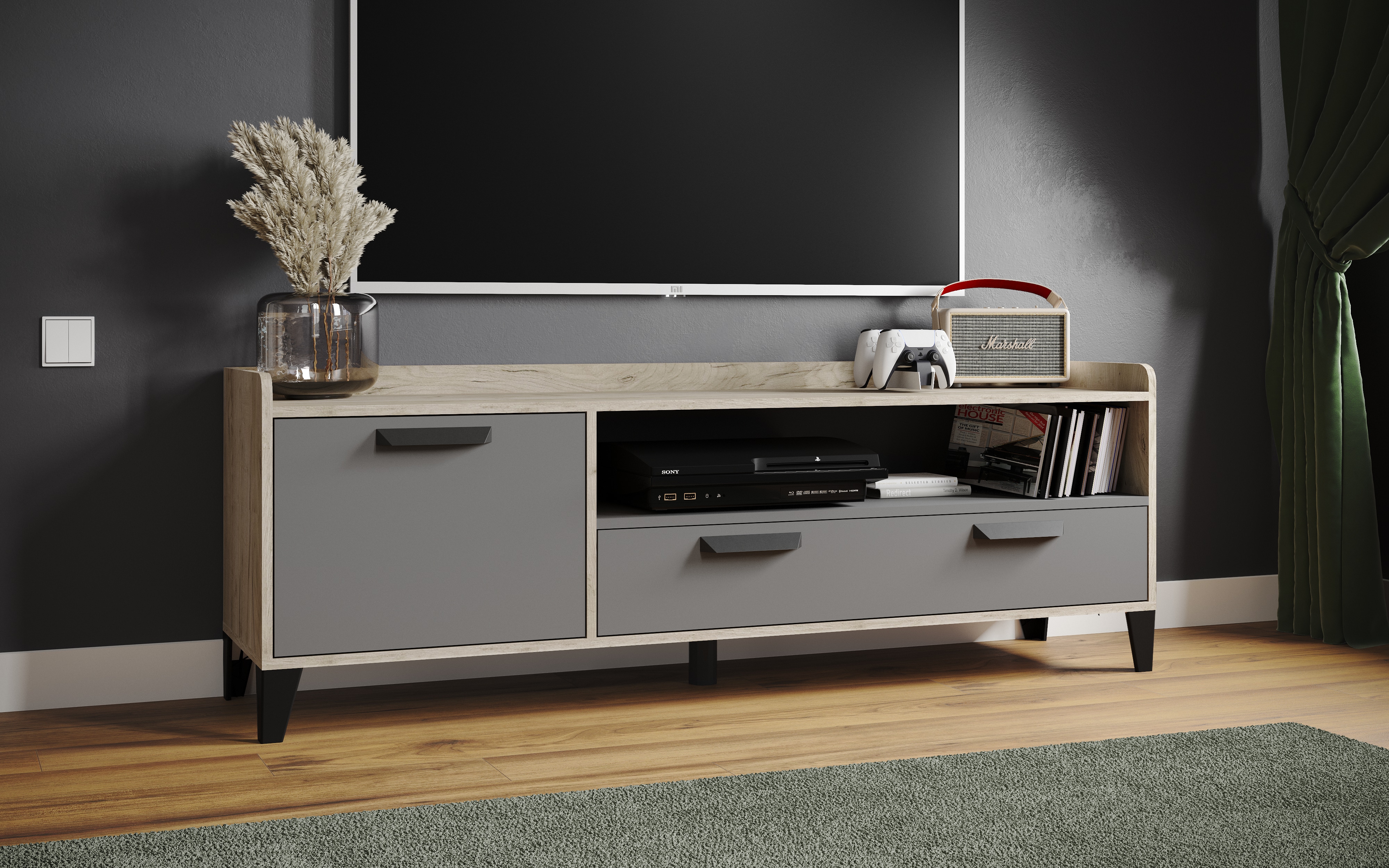 Тумба ТВ Парус-8, Дуб крафт серый, Серый